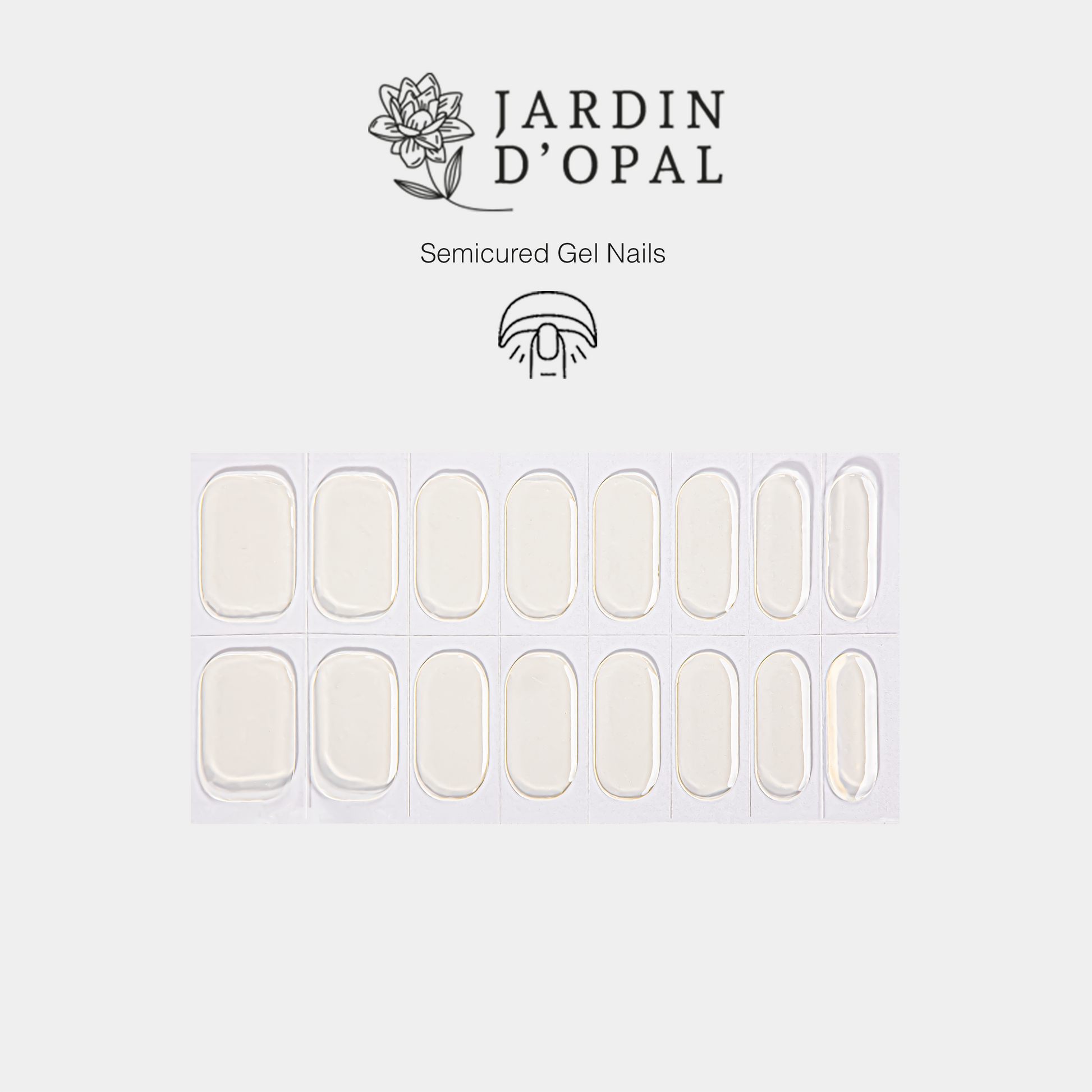 16 láminas de gel semicurada en 8 tamaños diferentes para que se ajusten perfectamente a tus uñas.